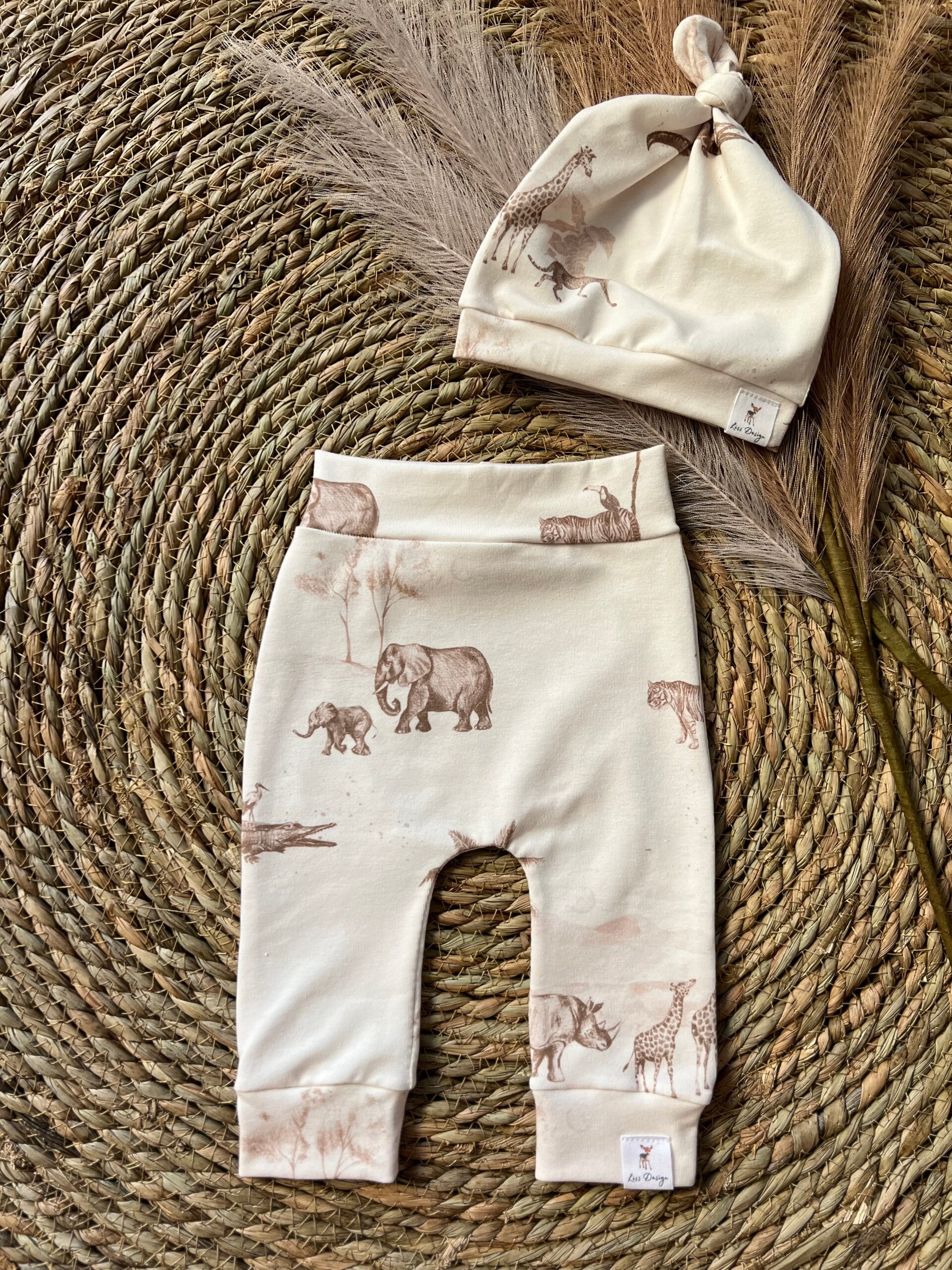 Deze stoere set bestaat uit een newborn mutsje en een babybroekje in maatje 50/56.