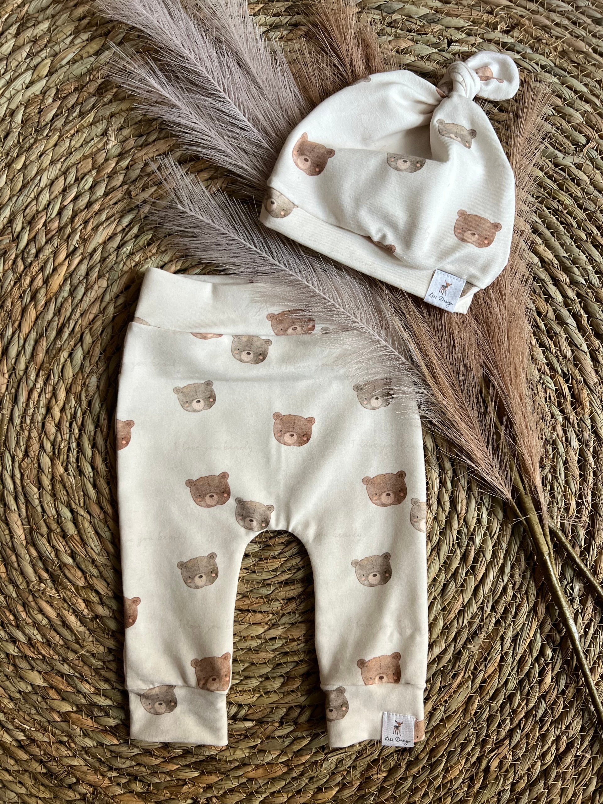 Deze unisex set bestaat uit een newborn mutsje en een babybroekje in maatje 50/56.